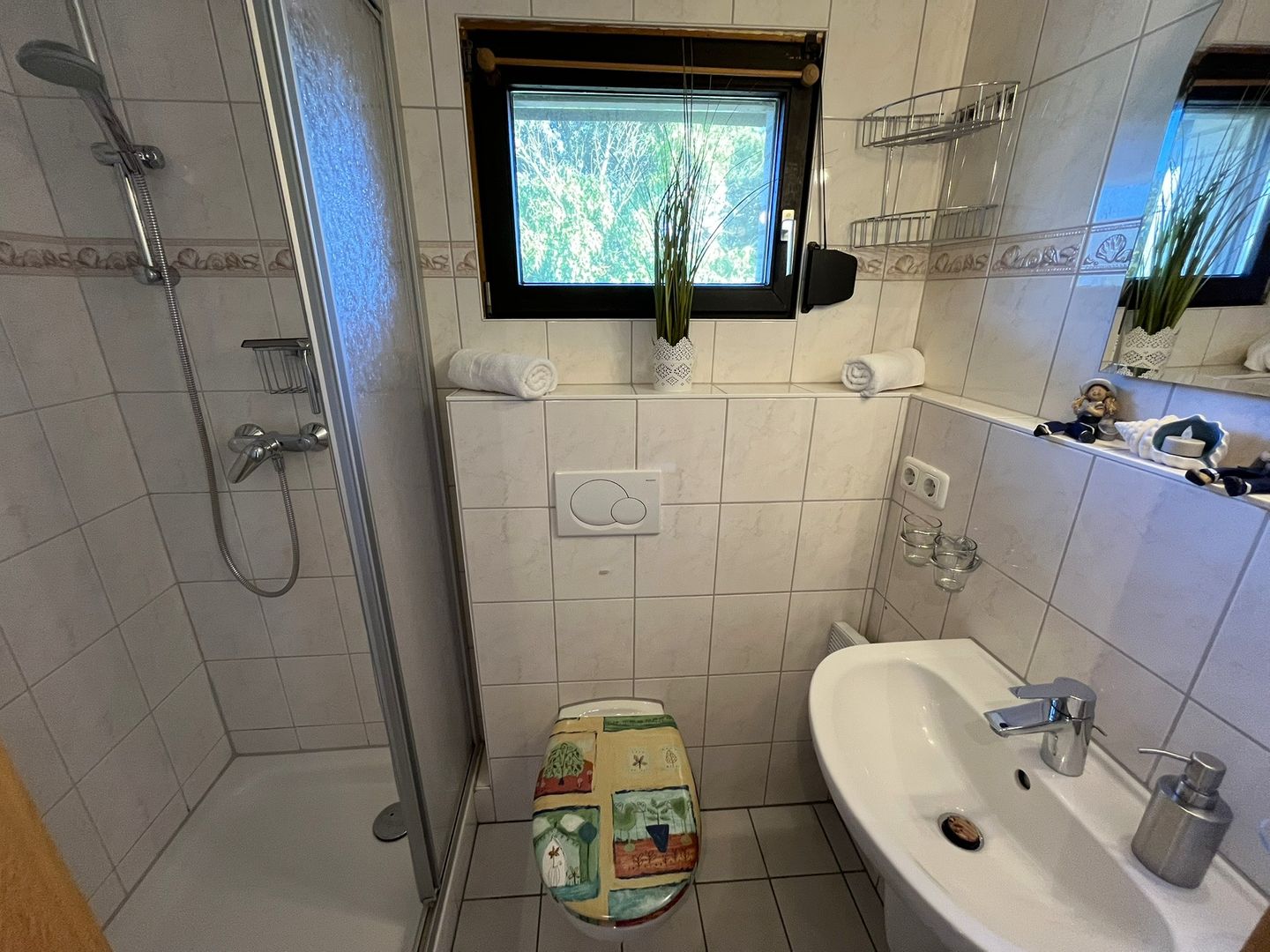 Das kleine Badezimmer mit Fenster verfügt über WC und eine Dusche (nicht ebenerdig).