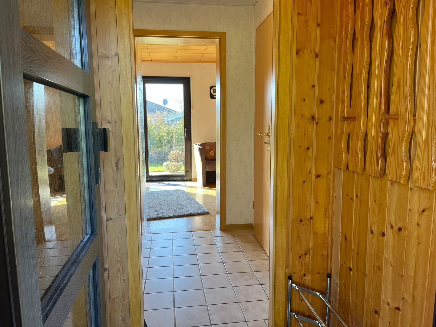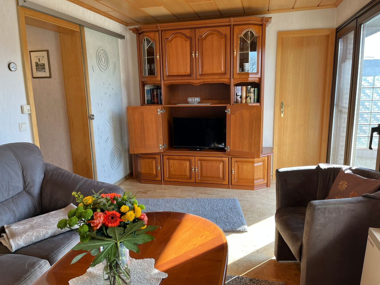 Im Wohnbereich erwartet Sie eine großzügige Wohnlandschaft und ein gemütlicher Sessel, TV und ein Radio. Vom diesem Raum gelangen Sie in den schönen Gartenbereich, der, mit seiner überdachten Terrasse die Möglichkeit bietet die Nordseeluft hautnah zu genießen, egal ob die Sonne scheint oder es auch mal etwas regnet.