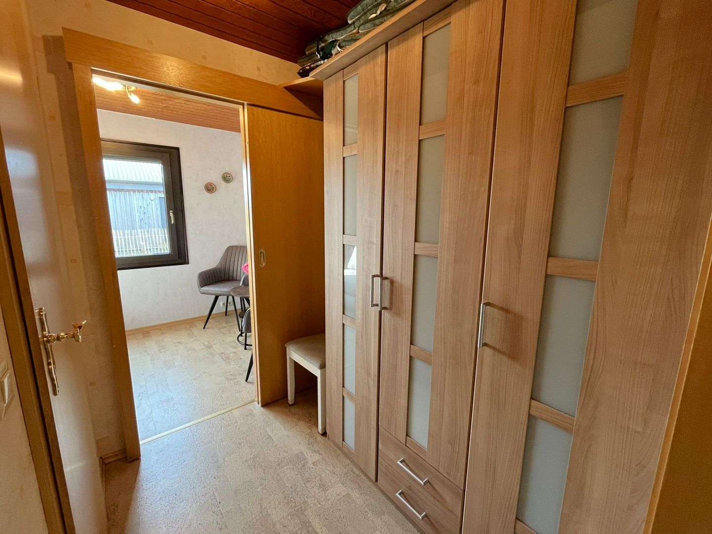 Eines der beiden Schlafzimmer ist mit einem Doppelbett (1,80m x 2m, mit 2 Einzelmatratzen) ausgestattet. Das andere Schlafzimmer verfügt über eine neue Schlafcouch ( 1,40mx 0,90m), die ausgezogen werden kann. Hier ist Platz für einen Erwachsenen oder auch 2 kleiner Kinder. Ein Kleiderschrank für die Urlaubsgarderobe finden Sie Flur, in dem es auch noch einen Abstellraum gibt um mitgebrachte Sachen zu verstauen.